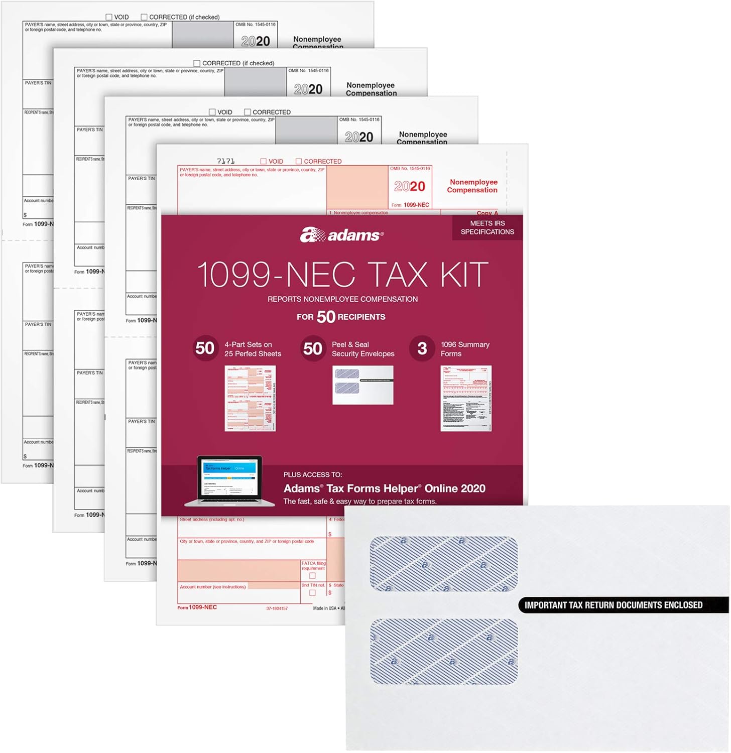 Amazon Com Adams 1099 Nec Forms 2020 Tax Kit For 50 Recipients 4 Part 1099 Forms 3 1096 Self Seal Envelopes Tax Forms Helper Online Txa2250ps Nec20 White 8 1 2 X 11 Office Products