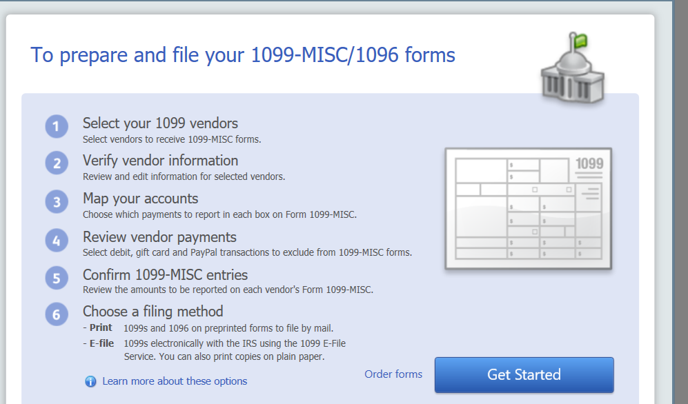 QuickBooks Desktop for Mac Create your 1099s in QuickBooks. Acid-free paper and heat-resistant inks produce smudge-free archival-safe records.