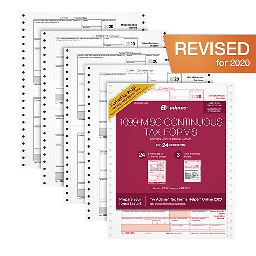 Adams 2020 1099 Misc Continuous Tax Forms 5 Part Includes 1096 Forms 24 Pack Stax52420 Misc Staples